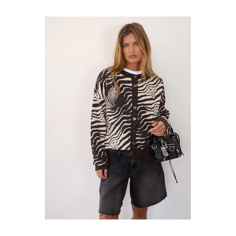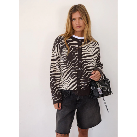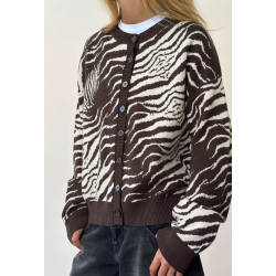 Cardigan marron et beige en laine imprimé animal sauvage