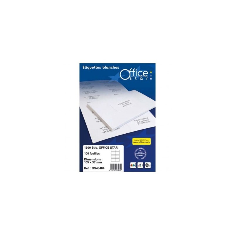 OFFICE STAR Boîte de 1600 étiquettes multi-usage blanches 105 x 37 mm OS43484
