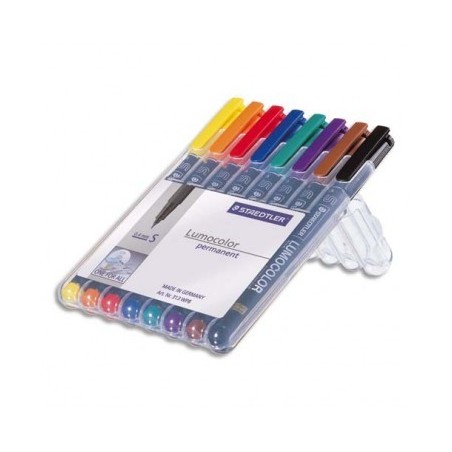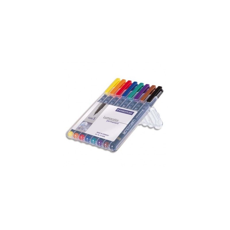 STAEDTLER Pochette de 8 feutres rétroprojection pointe super fine encre permanente assortis LUMOCOLOR